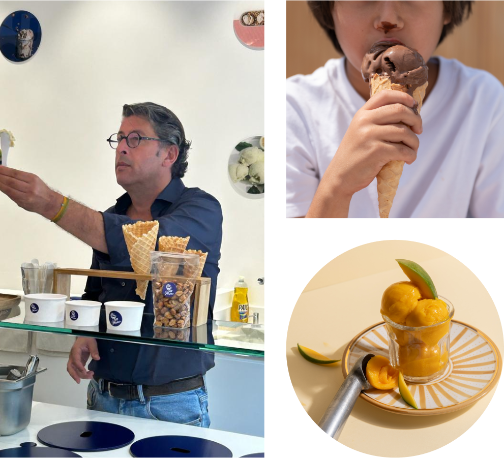 Formé chez Ferrandi à Paris et initié au savoir-faire des maitres glaciers à Bologne en Italie, Lamine Meradji se propose de mettre à jour la façon de consommer LA GLACE comme un accessoire de chaque moment.